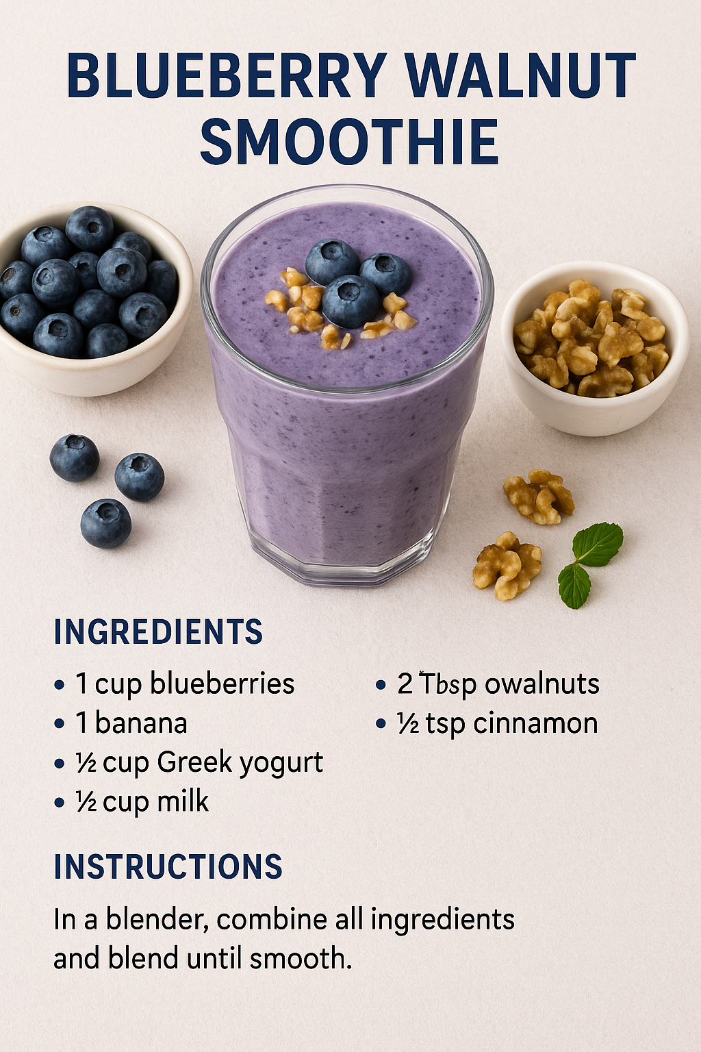 🥗 That’s exactly why I created the Brain Good Recipe Club—to make brain-healthy eating doable, delicious, and consistent. Each month, I share 10 science-backed recipes using ingredients you’ll see below—like blueberries, walnuts, leafy greens, and turmeric.